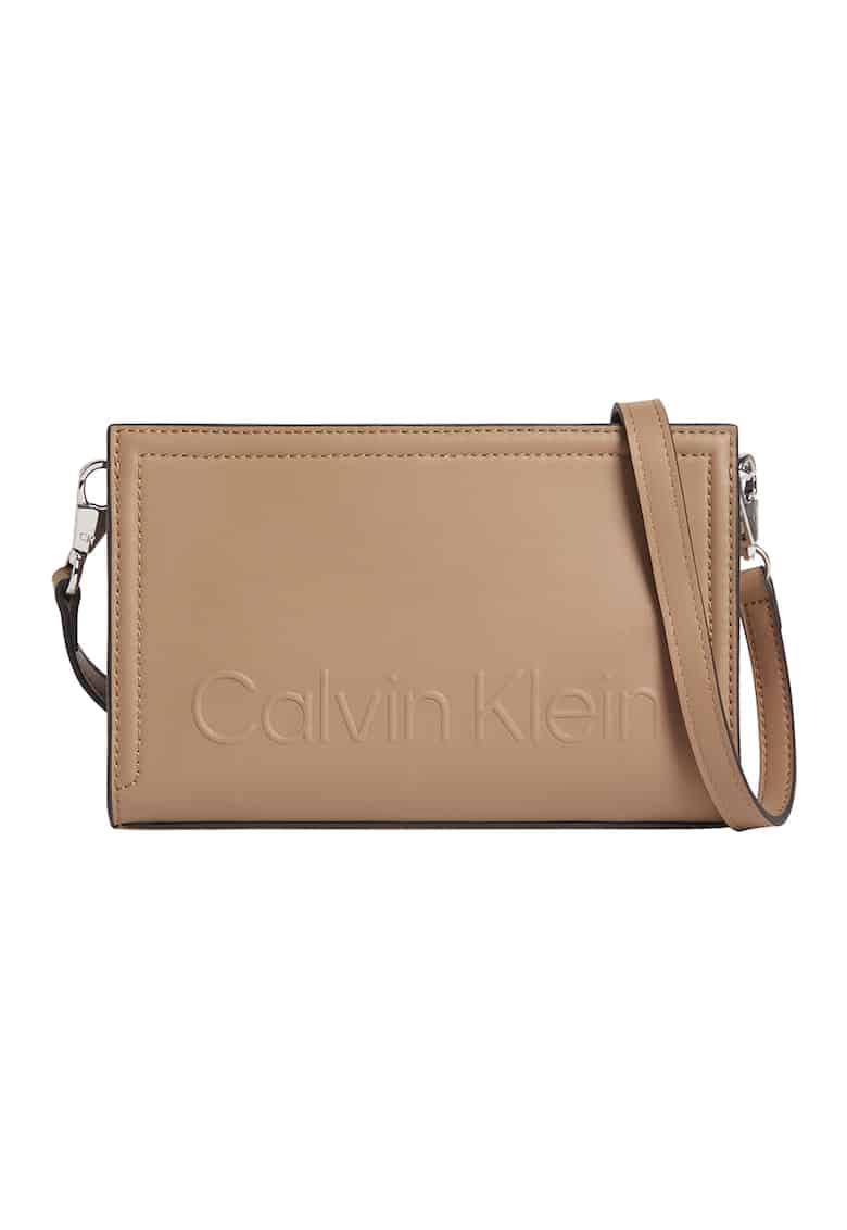 Geanta crossbody de piele ecologica cu logo in relief