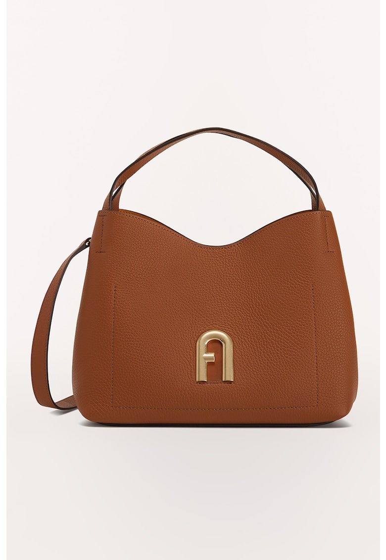 Geanta din piele cu bareta de umar si aplicatie logo metalica Primula