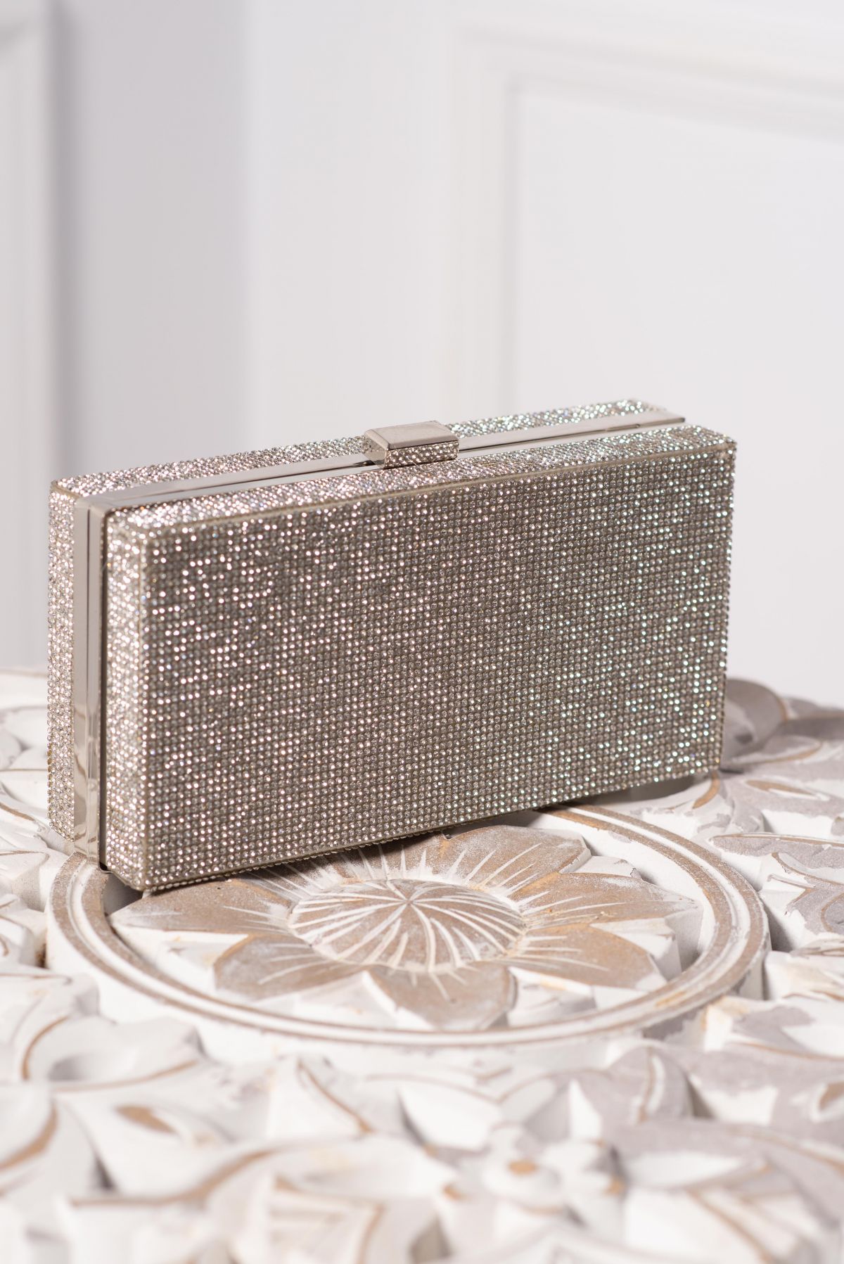 Specification: Geanta eleganta Senia argintie cu strassuri