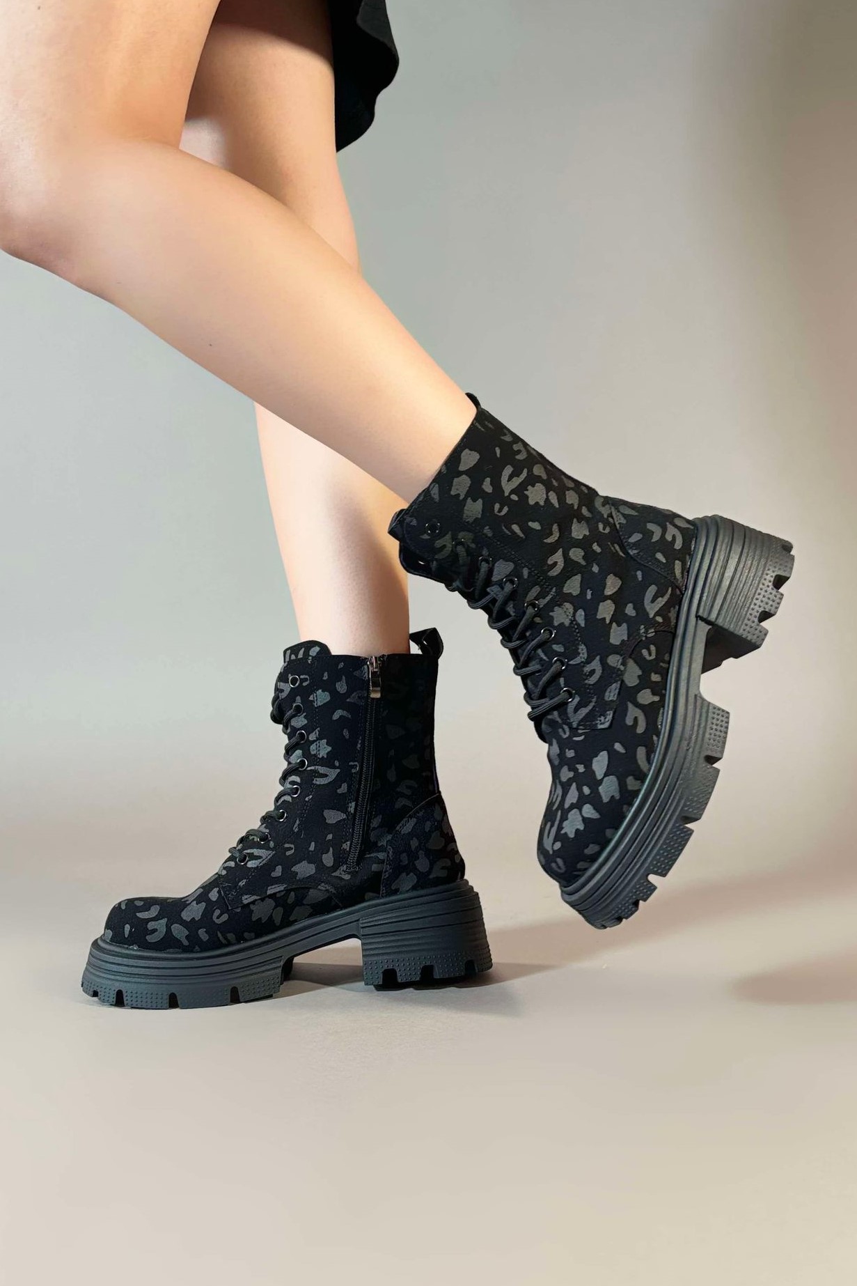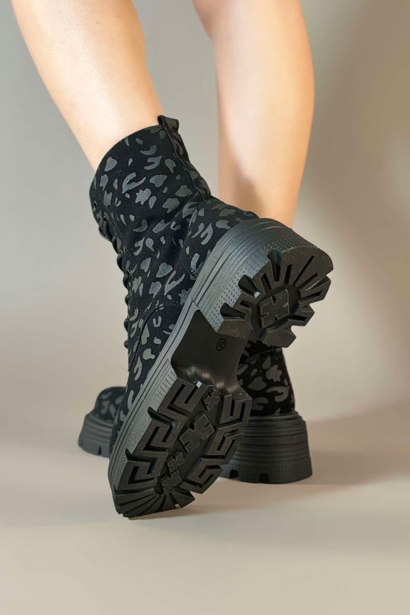 Ghetele Nora sunt perfecte pentru toamna/iarna.Culoare: Animal Print NegruMaterial talp?: cauciucMaterial interior: c?ptu?itMaterial exterior: piele ecologica intoarsa Inchidere: fermoar?nal?ime talp?: 4.5cm