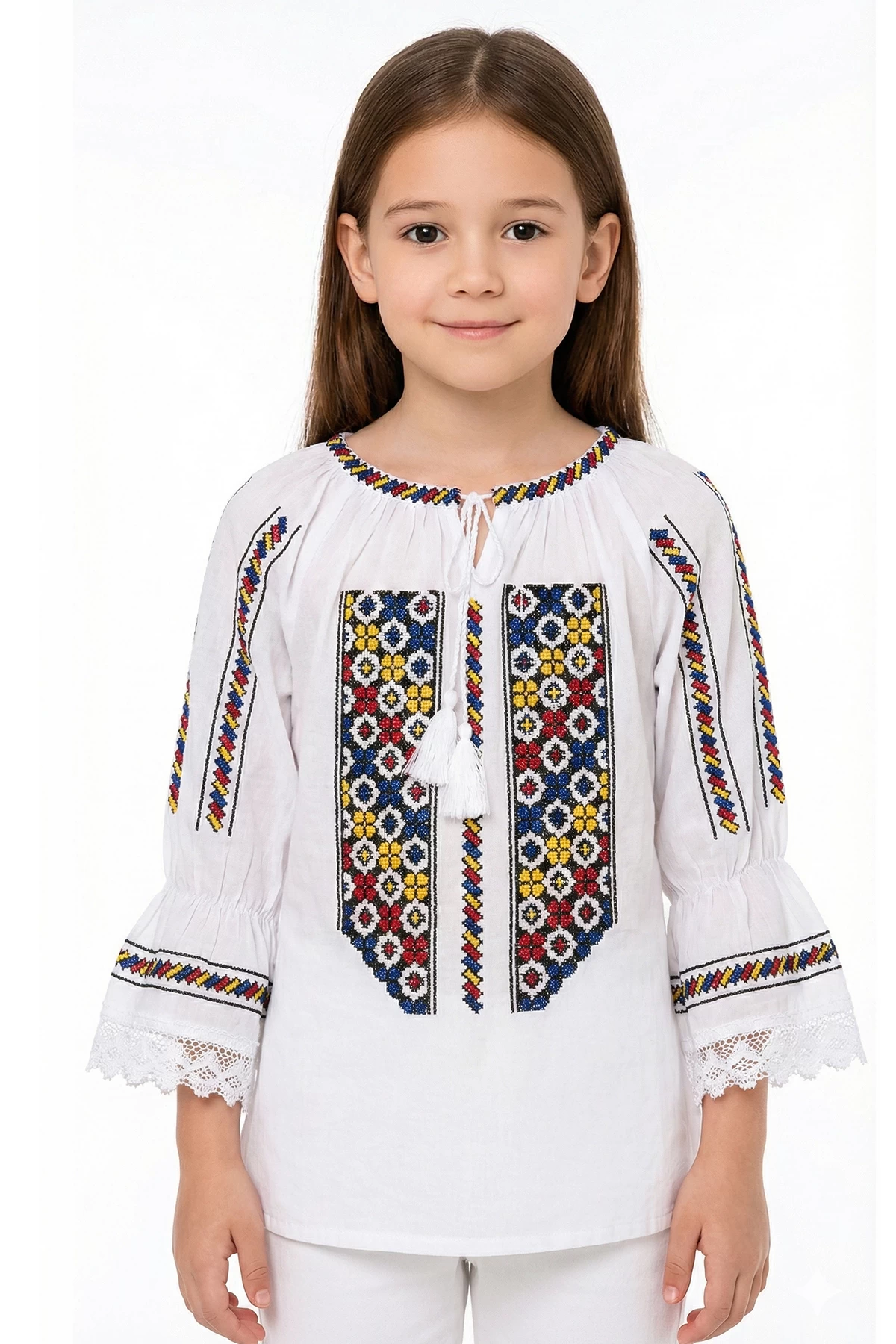 Specification: Ie traditionala de fetita Ingrid cu simbolul tricolorului