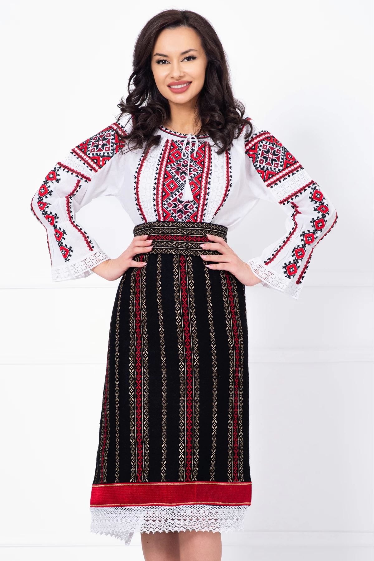 Specification: Ie traditionala Gineta cu broderie rosie inspirata din motive populare
