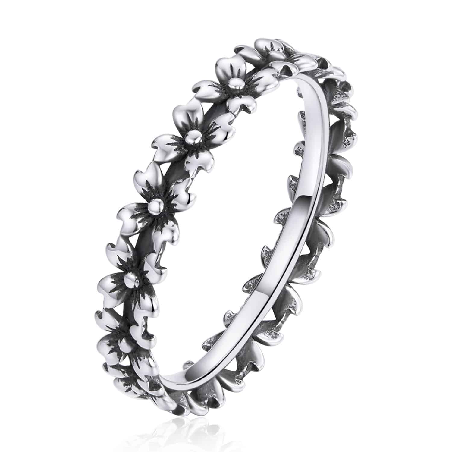Inel din argint Black Band with Flowers