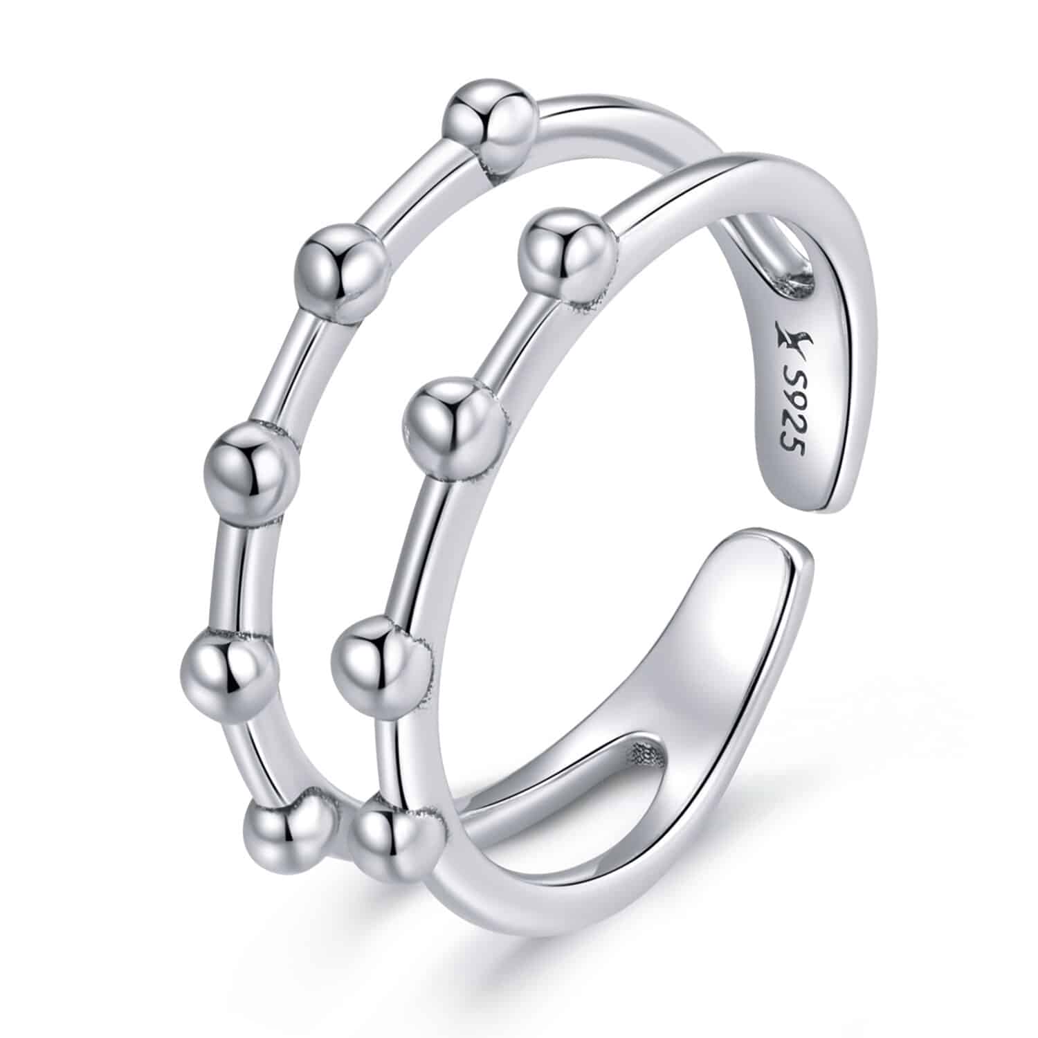 Inel reglabil din argint Double Beads