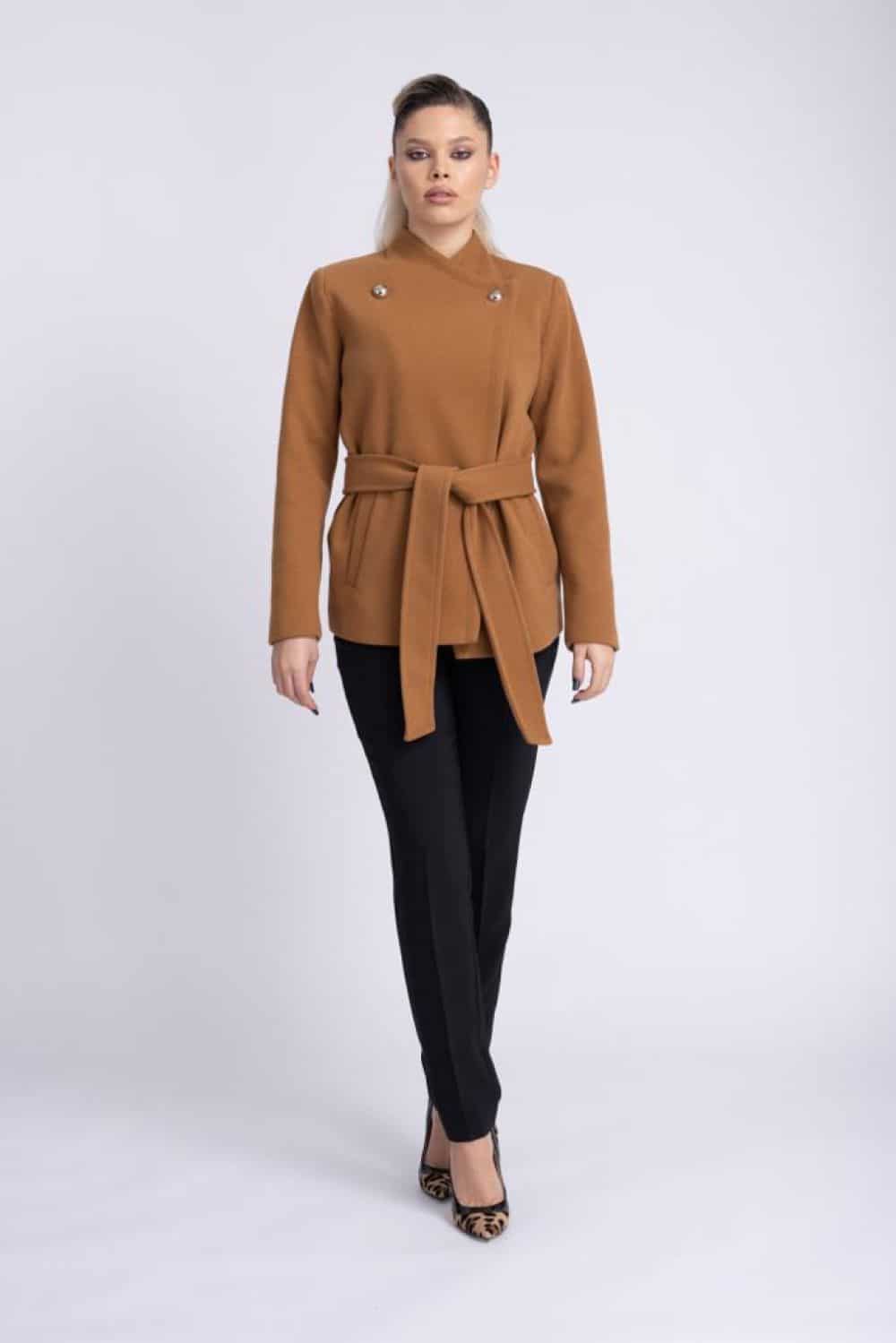 Jacheta confectionata din tesatura de inalta calitate cu striatii. Se inchide in partea din fata cu nasturi si prezinta captuseala vaporoasa subtire ideala pentru sezonul de primavara. Prezinta buzunare laterale si cordon detasabil.Compozitie 20% LÂNÄ‚ 80% POLIESTER.Intretinere:Respectati instructiunile de curatare de pe eticheta produsului.Produs romanesc.Info model:Înaltime 170 cm poarta marimea S
