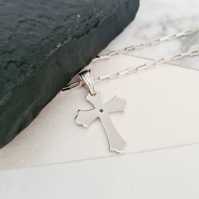 Specification: Lant pentru el cu Diamant natural – Pandantiv Cruce – Argint 925 Rodiat – Lant barbatesc zale