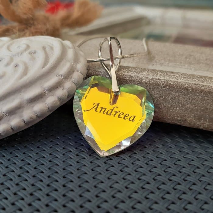 Specification: Lantisor Argint 925 cu pandantiv cristal Swarovski inima gravat – Aurore Boreale