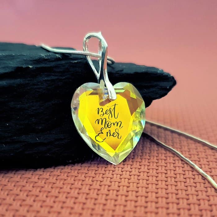 Specification: Lantisor cristal Swarovski inima gravat – Best Mom Ever
