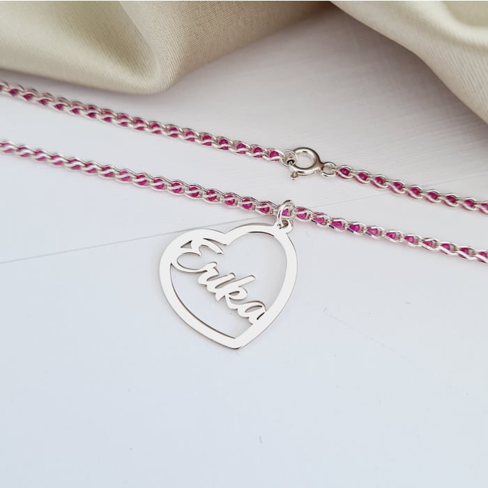 Lantisor cromatic – Pandantiv inima cu nume – Model lant impletit cu Zirconii – Argint 925