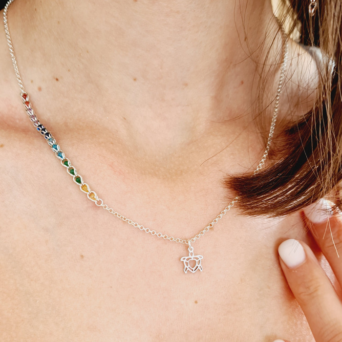 Lantisor cromatic – Simboluri de vara – Model combinat cu 6 cm de lant impletit cu Zirconii multicolore – Argint 925