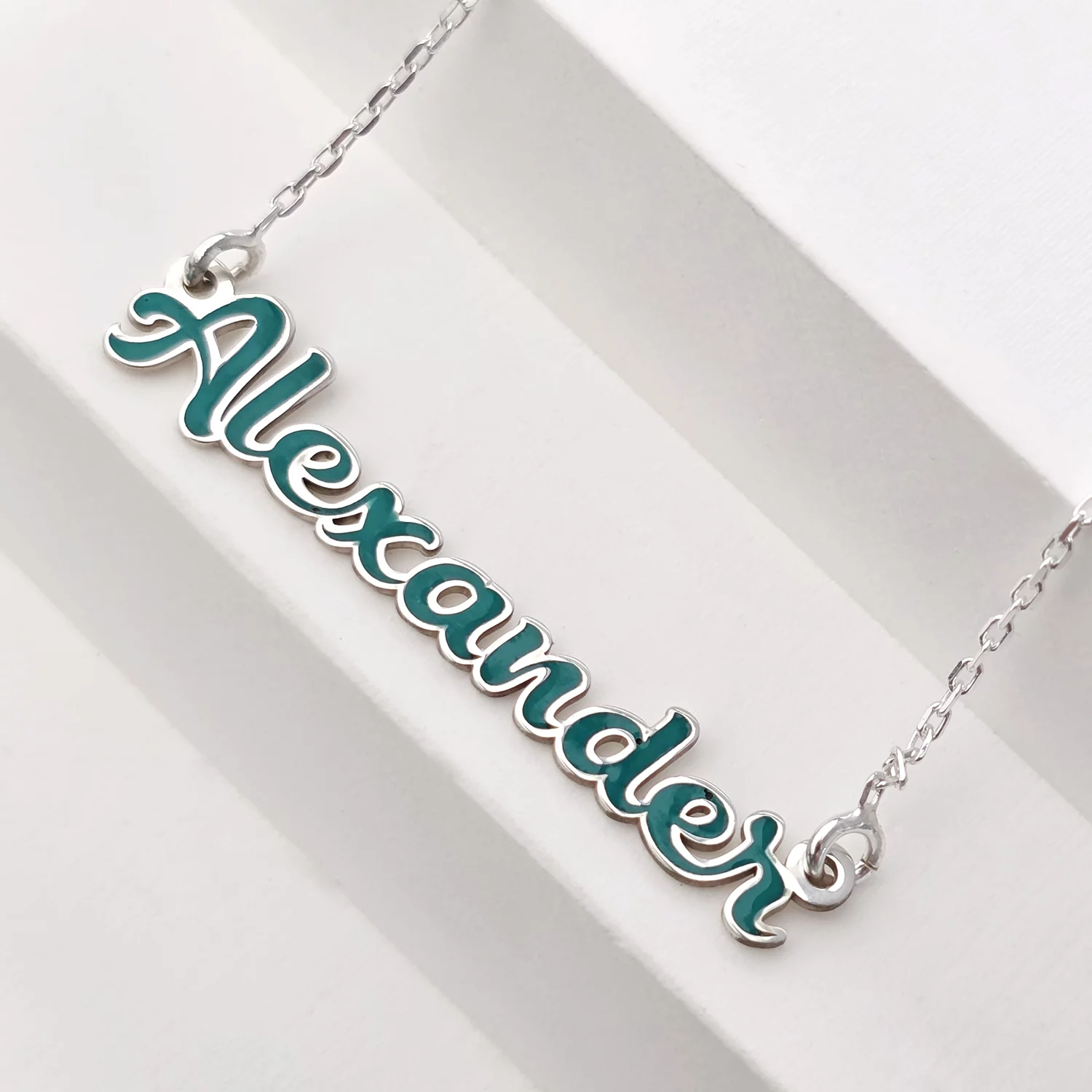 Specification: Lantisor cu nume si email turcoaz – Argint 925