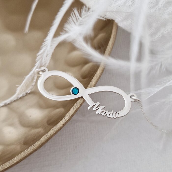 Specification: Lantisor Etern – Infint cu 1 nume decupate si cristale Swarovski – Argint 925