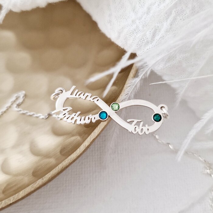 Lantisor Etern – Infint cu 3 nume decupate si cristale Swarovski – Argint 925