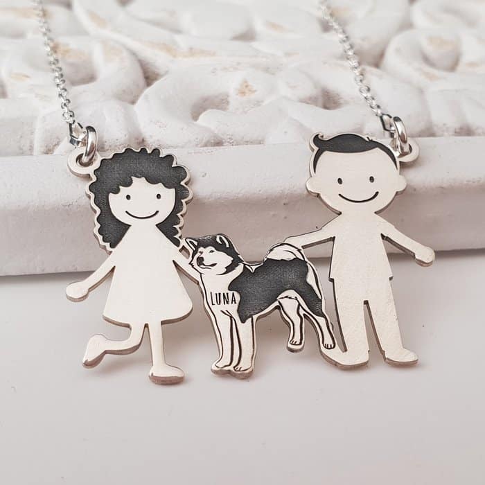Specification: Lantisor Familie – 3 Membri cu Akita – Argint 925