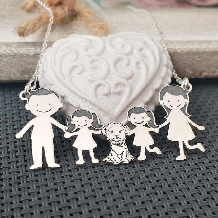 Lantisor Familie – 5 Membri cu Bichon – Argint 925