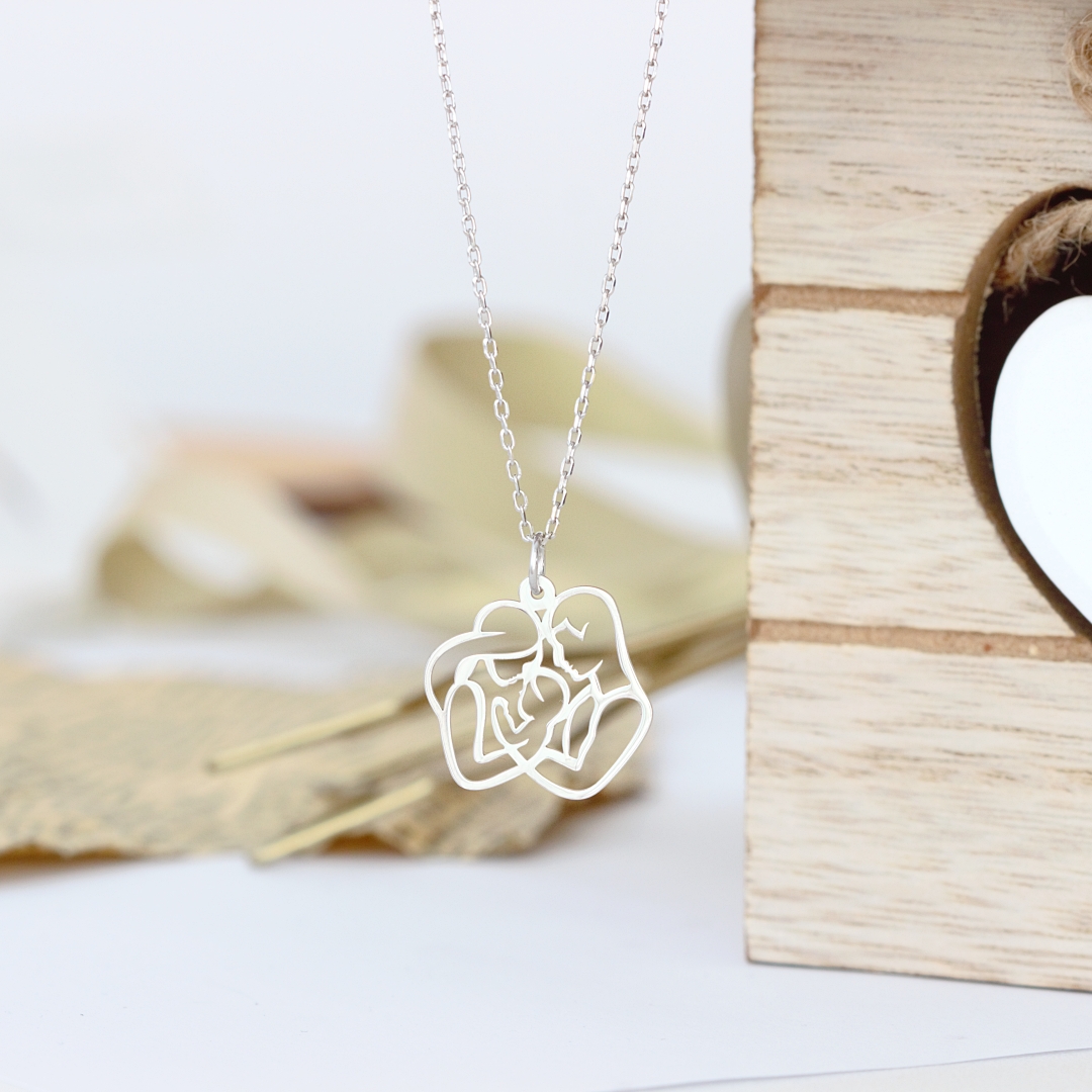Specification: Lantisor mama, tata si bebe – familie trei membri – din argint 925