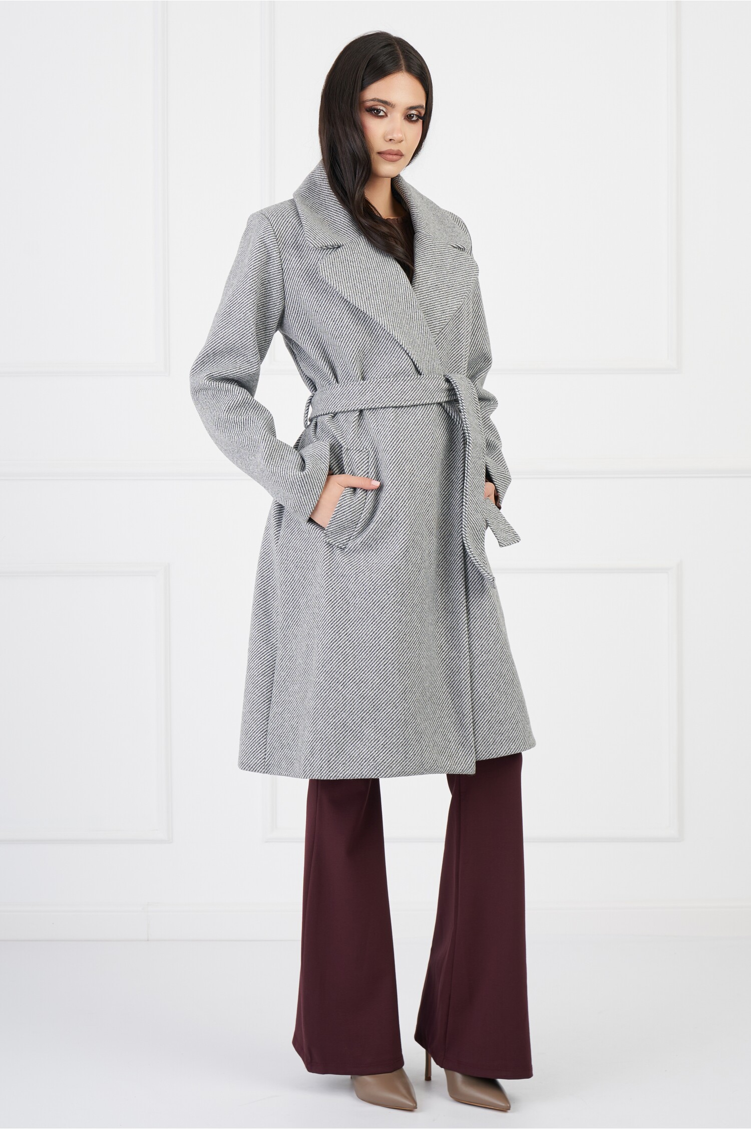 Specification: Palton Ariana gri cu buzunare si cordon in talie