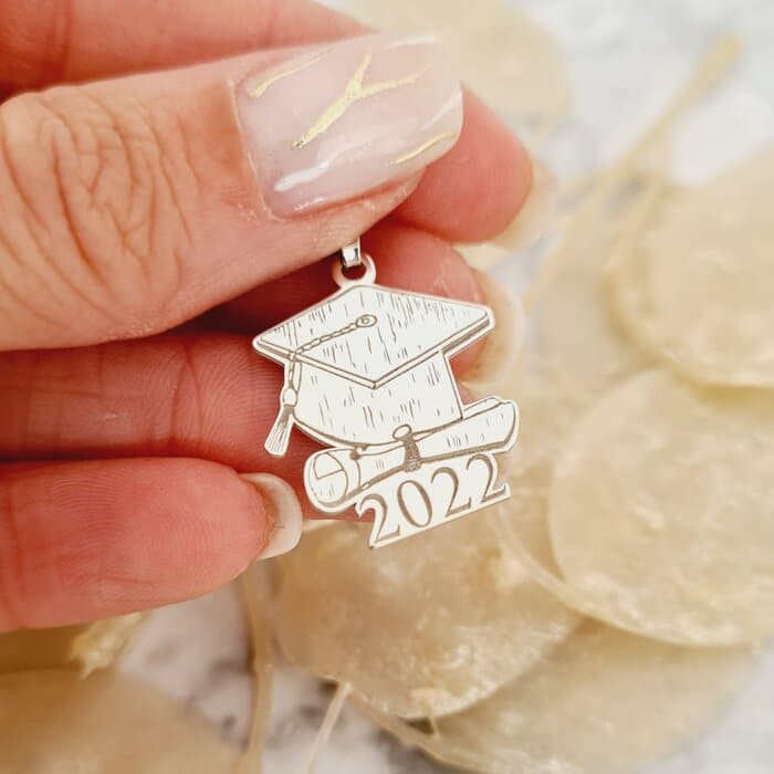 Specification: Pandantiv Gaudeamus – Toca personalizata cu anul absolvirii – Argint 925