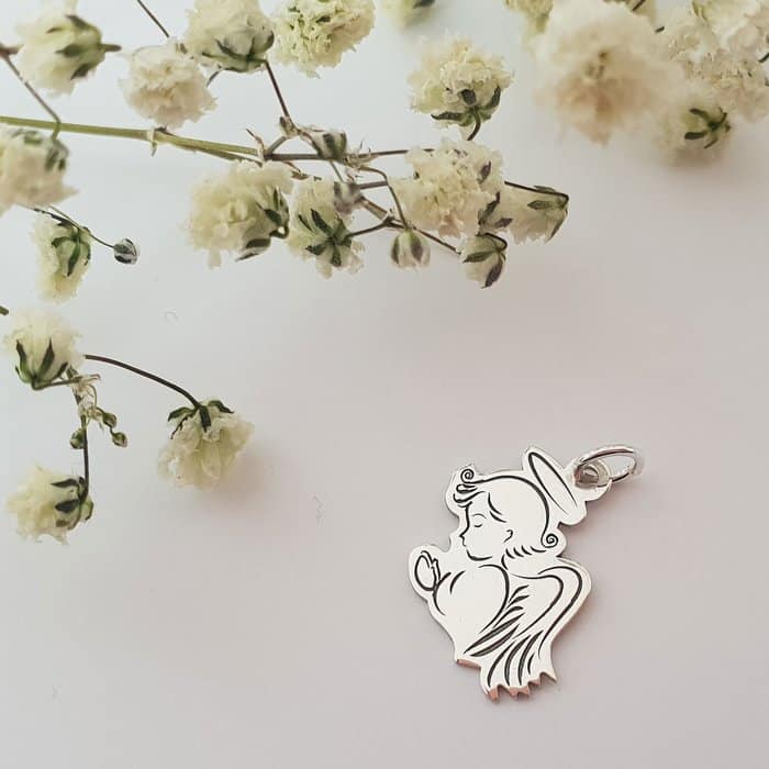 Ingerii sunt gardienii sperantei si a minunilor, pazitorii magiei si a viselor. Oriunde exista iubire, un inger zboara prin apropriere. Un inger in casa va va pazi familia zi si noapte! Ofera in dar o amuleta, ce ii va aduce protectie, curaj, putere si voie buna celei ce o va purta. DESPRE PRODUS: Pandantivul este creat din Argint 925 prin taiere si gravare laser Dimensiunea lui este de 15×12 mm Bijuteria vine insotita de un certificat de autenticitate a Argintului 925, iar garantia este de 1 an. Gramaj aproximativ ARGINT 925: 0.70 grame Aceasta bijuterie personalizata este realizata de la zero pentru fiecare comanda in parte. Dupa plasarea si confirmarea comenzii incepe procesul ei de creatie: Realizare Design -> Taiere/Personalizare -> Finisare manuala -> Polish Final -> Ambalare -> Livrare! Datorita procesului de productie si a personalizarii bijuteriei dupa propria dorinta gramajul final al produsului poate fi diferit. Din acest motiv pe site este afisat gramajul obtinut prin catarirea produsului realizat in pozele de prezentare. Pretul produsului include pe langa costul gramului de Argint 925 si tot procesul de mai sus, necesar pentru realizarea unui produs cu adevarat special pentru tine. Toate produsele din Argint 925 comercializate de Chic Bijoux sunt marcate cu titlul Argintului· 925 · Dupa plasarea comenzii veti fi contactat de o colega din echipa Chic Bijoux pentru toate detaliile necesare personalizarii produsului.