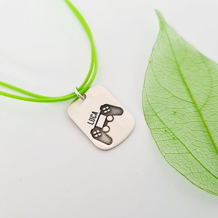 Pandantiv placuta personalizata – Nume si controller joystick – Argint 925 – Snur colorat