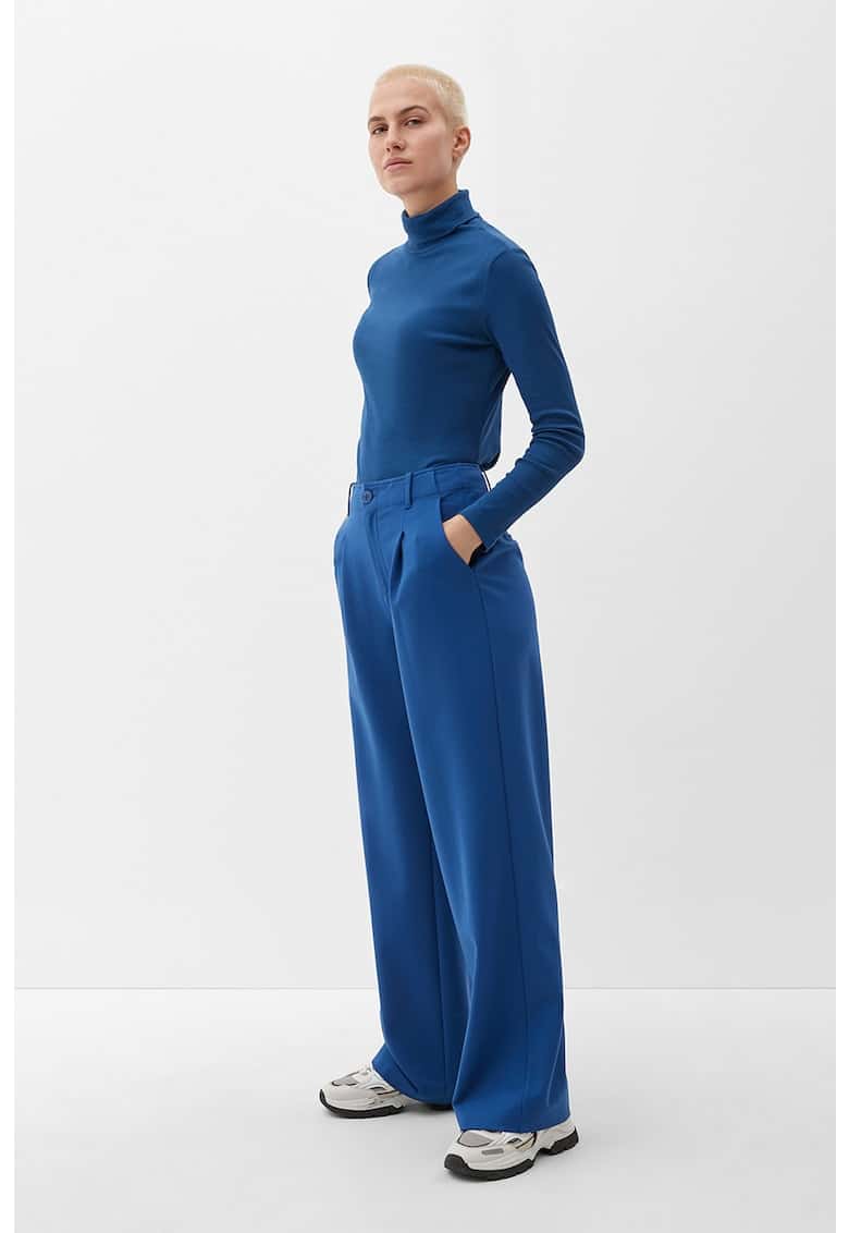 Caracteristici Culoare: albastru inchis Stil: casual Material: sintetic – viscoza Imprimeu: uni Croiala: croiala ampla Lungime: lungi Talie: inalta Buzunare: 4 Sistem inchidere: fermoar Compozitie Exterior: 61% viscoza – 35% poliamida – 4% elastan