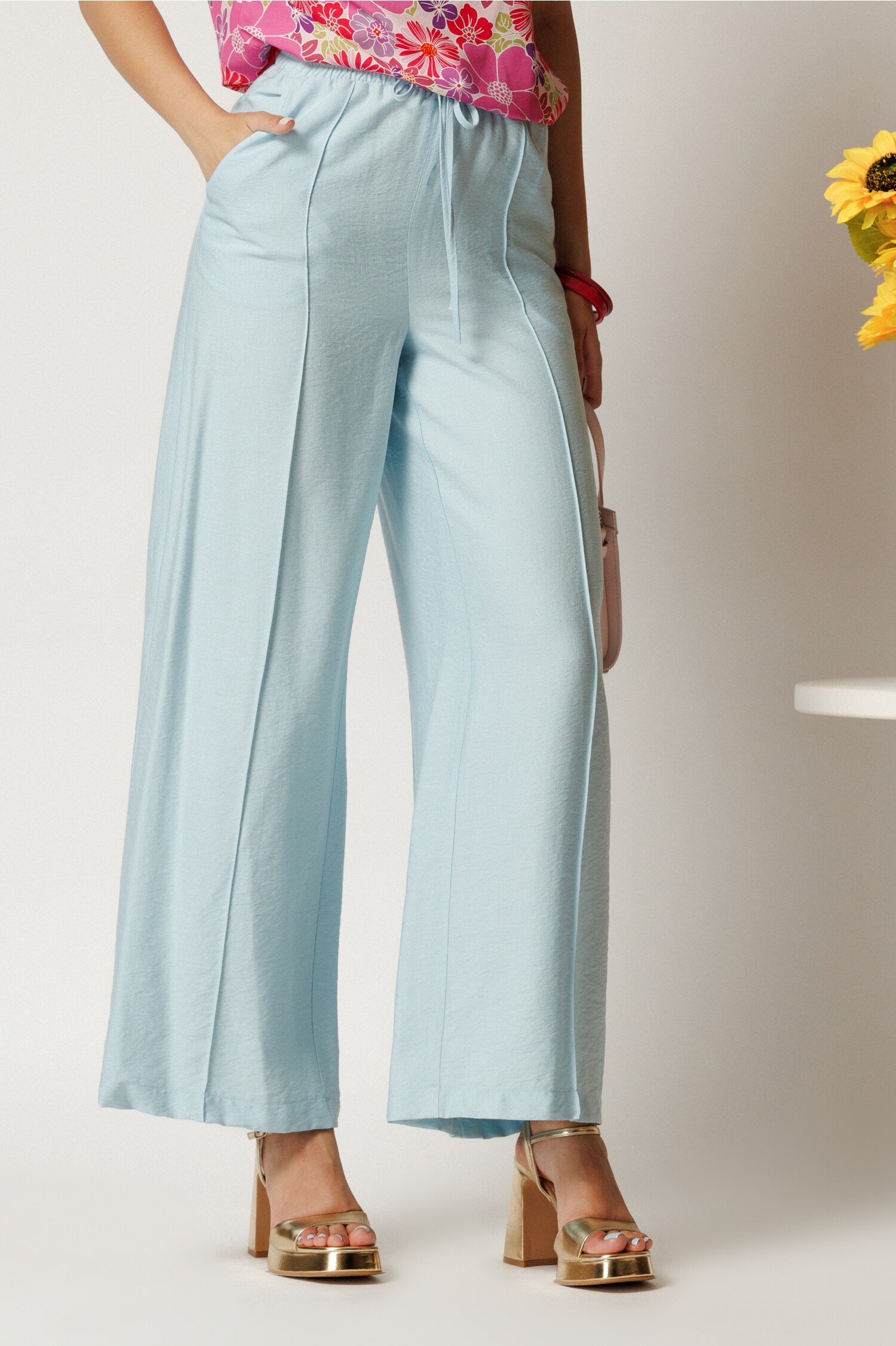Specification: Pantaloni bleu din rayon cu croi lejer si elastic in talie