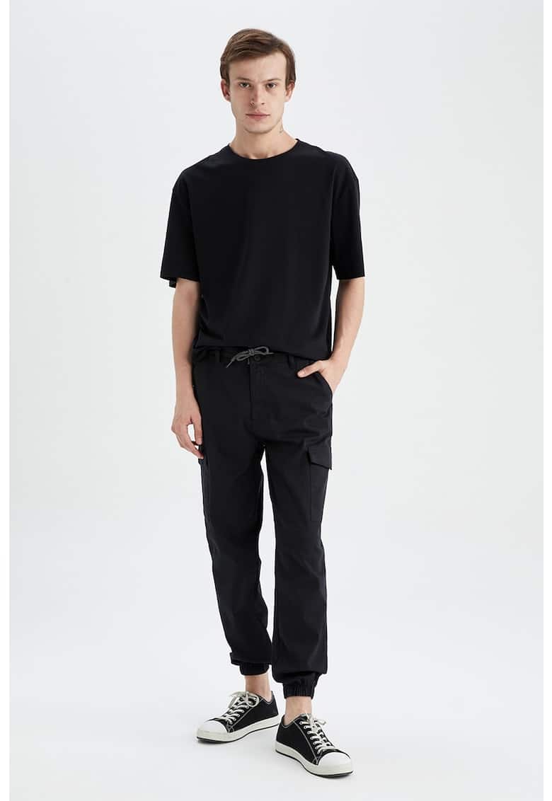 Caracteristici Culoare: negru Imprimeu: uni Material: bumbac Stil: casual Croiala: conica Talie: medie Buzunare: 6 Lungime: lungi Detalii: snur pentru ajustare Compozitie Exterior: 98% bumbac – 2% elastan