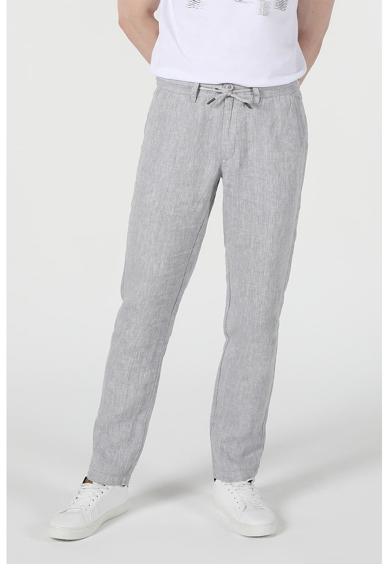 Pantaloni chino din in cu snur de ajustare in talie