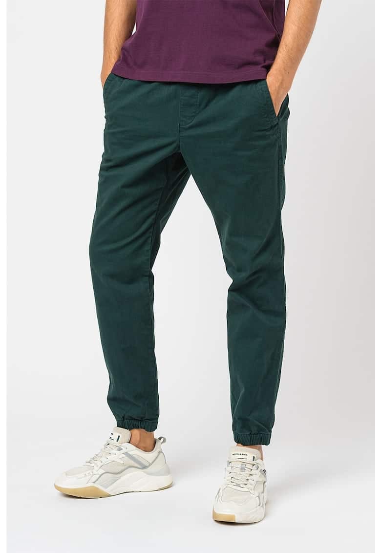 Caracteristici Culoare: verde englez Imprimeu: uni Material: bumbac Stil: casual Croiala: slim fit Talie: medie Buzunare: 3 Lungime: lungi Detalii: snururi pentru ajustare Sistem inchidere: fara inchidere Compozitie Exterior: 98% bumbac – 2% elastan Info model Modelul poarta un produs de marimea M. Marimi model: 195 cm inaltime – 98 cm bust – 76 cm talie – 101 cm sold