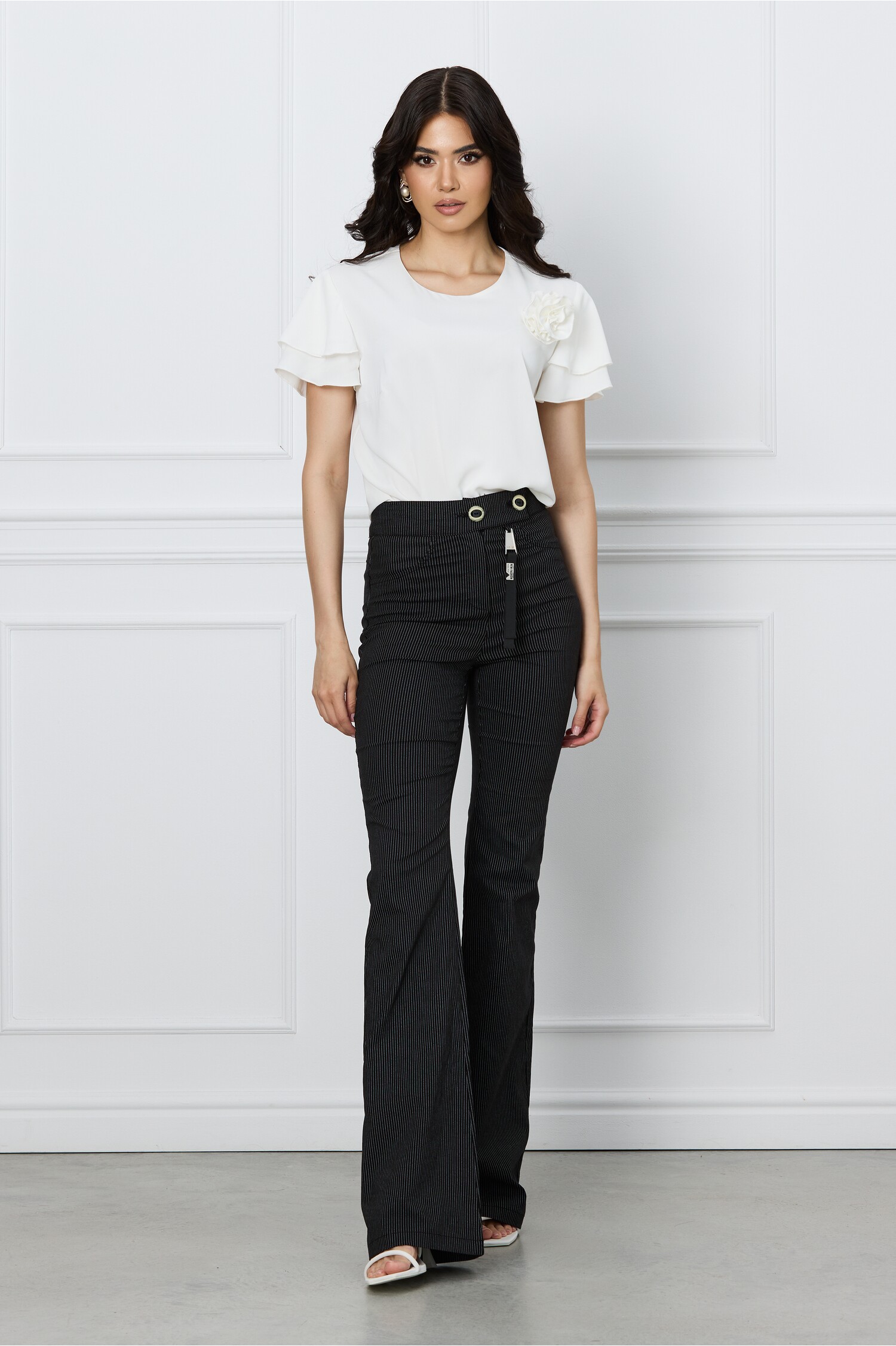 Specification: Pantaloni Cloe negri evazati cu dungi albe