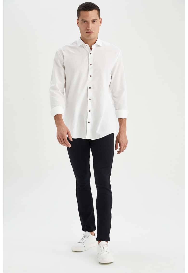 Caracteristici Culoare: negru Imprimeu: uni Material: sintetic – bumbac Stil: casual Croiala: conica Talie: medie Buzunare: 5 Lungime: lungi Sistem inchidere: fermoar Compozitie Exterior: 64% bumbac – 34% poliester – 2% elastan