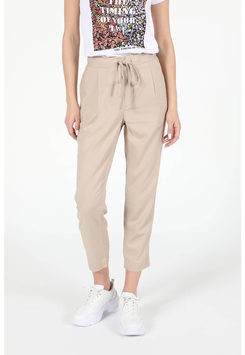 Caracteristici Culoare: bej Stil: casual Material: viscoza Imprimeu: uni Croiala: conica Lungime: crop Talie: medie Sistem inchidere: fara inchidere Compozitie Exterior: 98% viscoza – 2% elastan