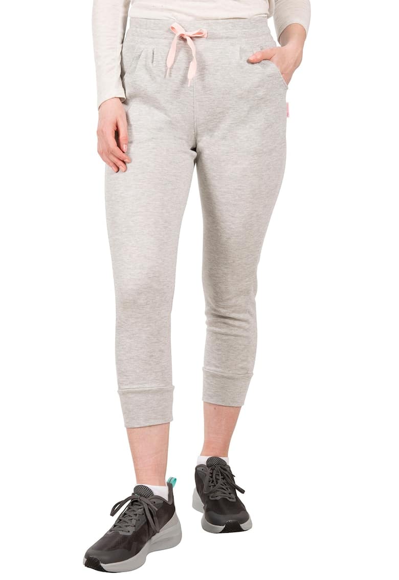 Caracteristici generale Tip produs: pantaloni Tip: crop Stil: talie inalta Culoare: gri deschis melange Material: bumbac – fibre sintetice Imprimeu: uni Sezon: primavara-vara – toamna-iarna Sport: fitness Detalii: 2 buzunare laterale Detalii material Exterior: exterior: 71% poliester – 29% bumbac