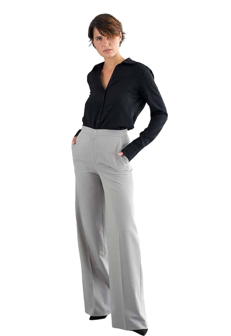 Caracteristici Culoare: gri cenusiu Stil: elegant Material: viscoza – poliamida Imprimeu: uni Croiala: croiala ampla Lungime: lungi Talie: inalta Buzunare: 4 Sistem inchidere: fermoar Compozitie Exterior: 75% poliamida – 20% raion – 5% spandex