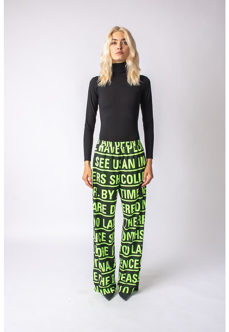 Pantaloni cu imprimeu text si talie elastica