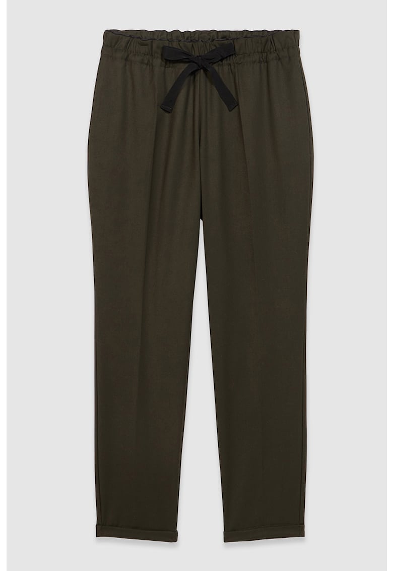 Caracteristici Culoare: verde militar Stil: casual Material: sintetic – viscoza Imprimeu: uni Croiala: conica Lungime: lungi Talie: inalta Detalii: snur pentru ajustare Sistem inchidere: fara inchidere Compozitie Exterior: 67% poliester – 31% viscoza – 2% elastan