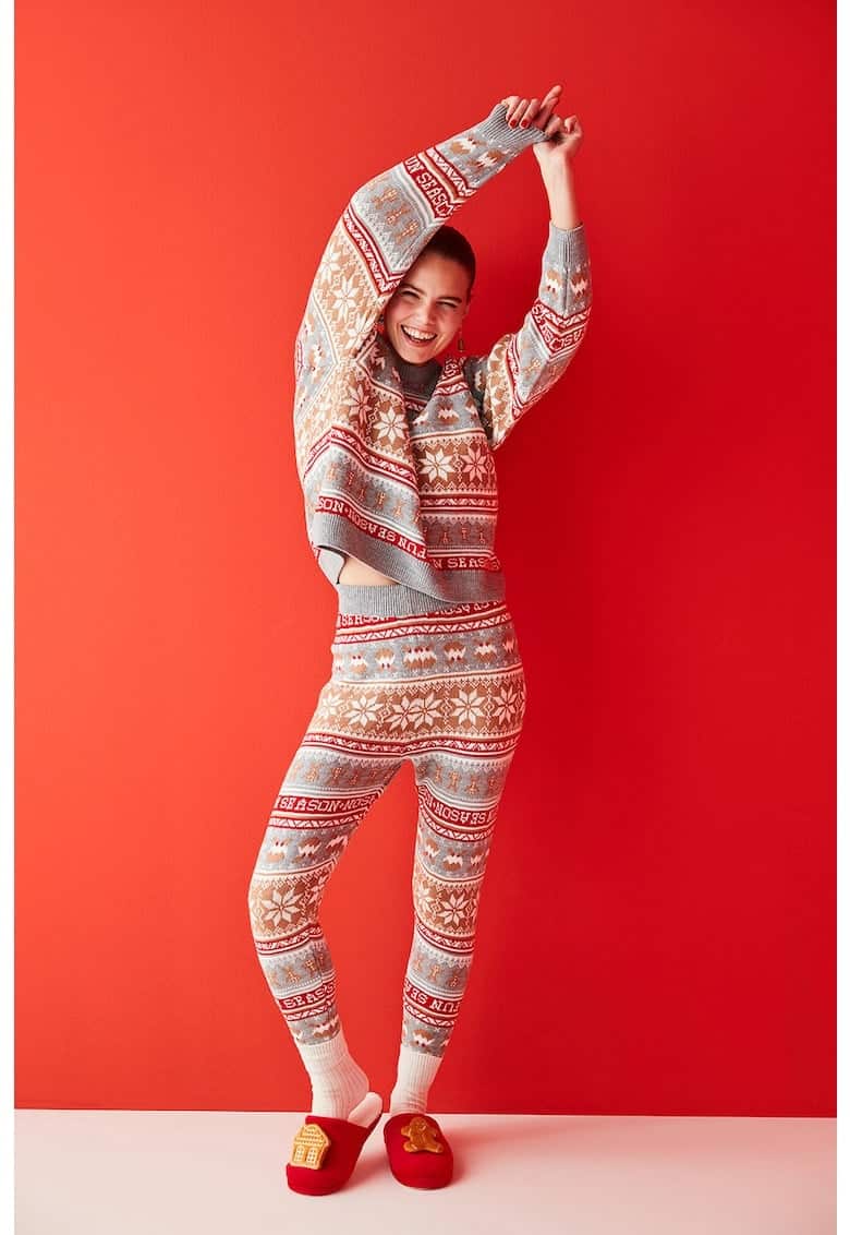 Pantaloni de casa tricotati cu imprimeu grafic! Cu GENIUS ai transport gratuit la easybox, pentru comenzi de minimum 50 lei