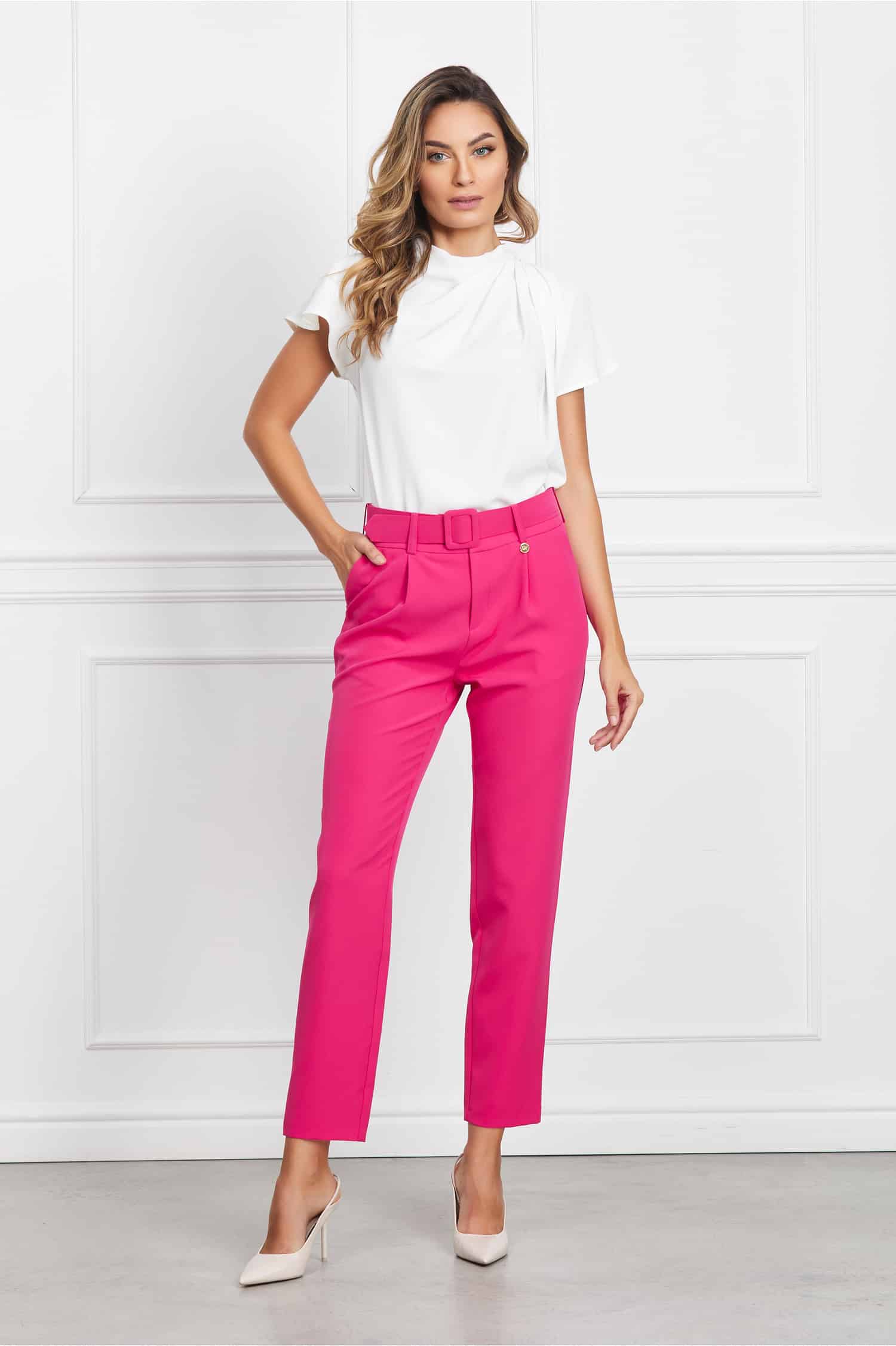 Pantaloni Dy Fashion fucsia cu pliuri si curea in talie ! Transport si retur gratuite indifernet de valoarea comenzii!