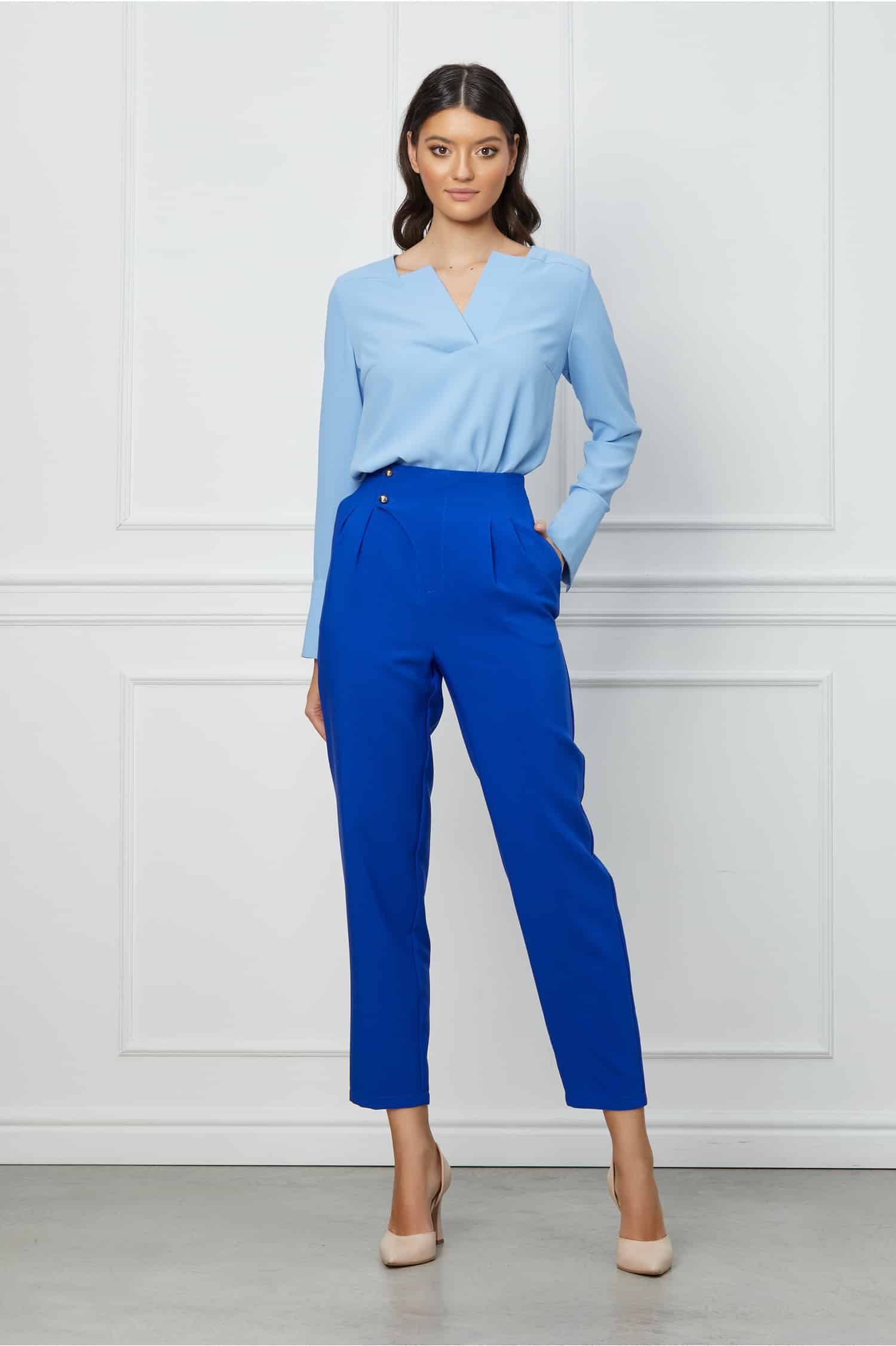 Pantaloni LaDonna albastru royal cu pliuri in talie ! Transport si retur gratuite indifernet de valoarea comenzii!
