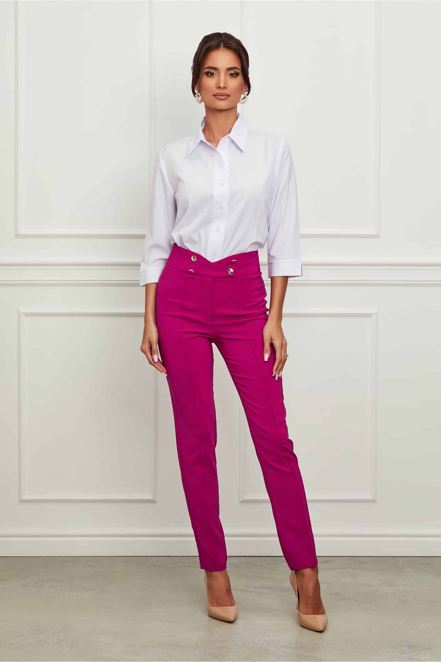Specification: Pantaloni LaDonna fucsia cu nasturi in talie