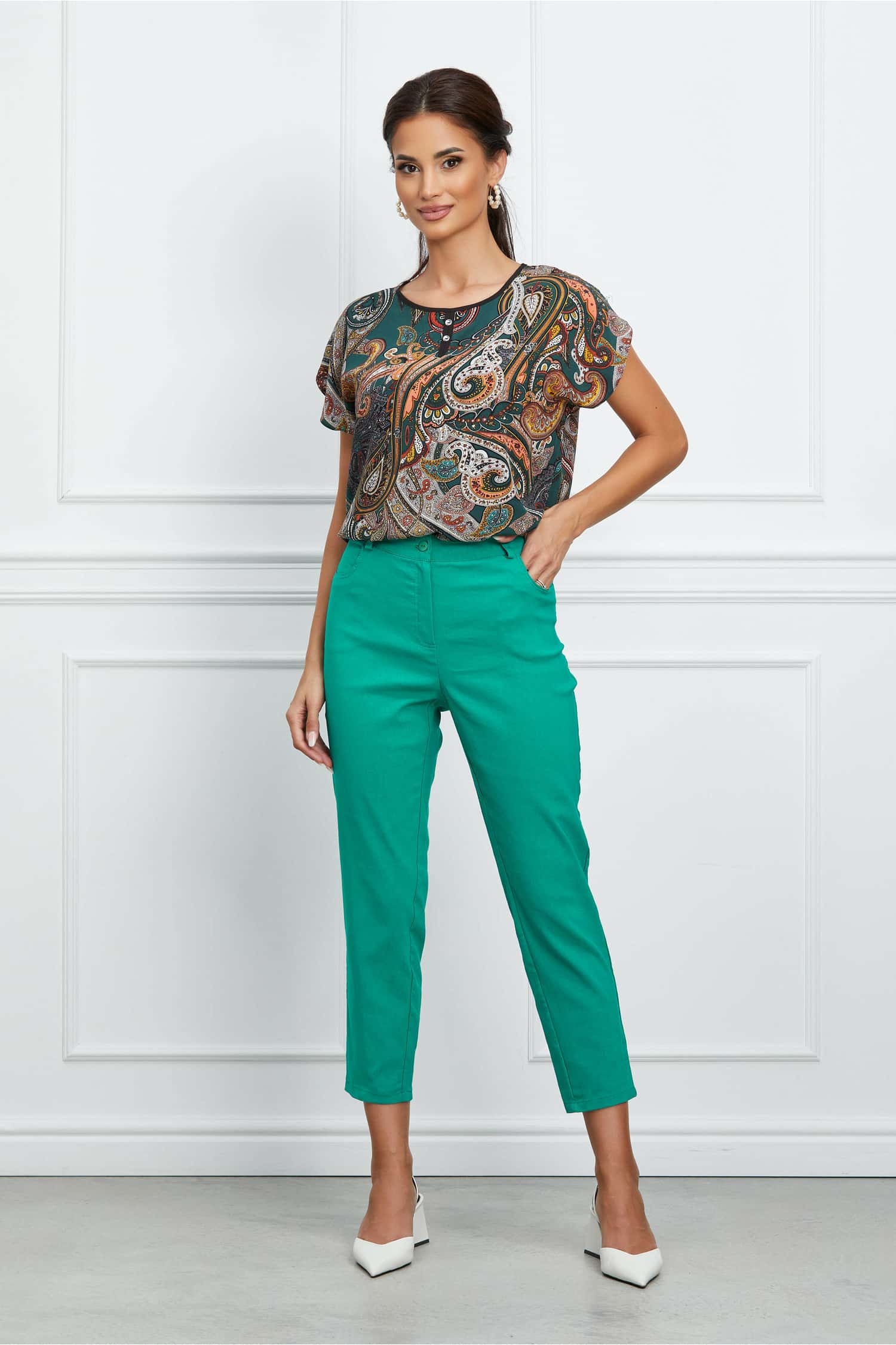 Specification: Pantaloni Lara verzi cu buzunare