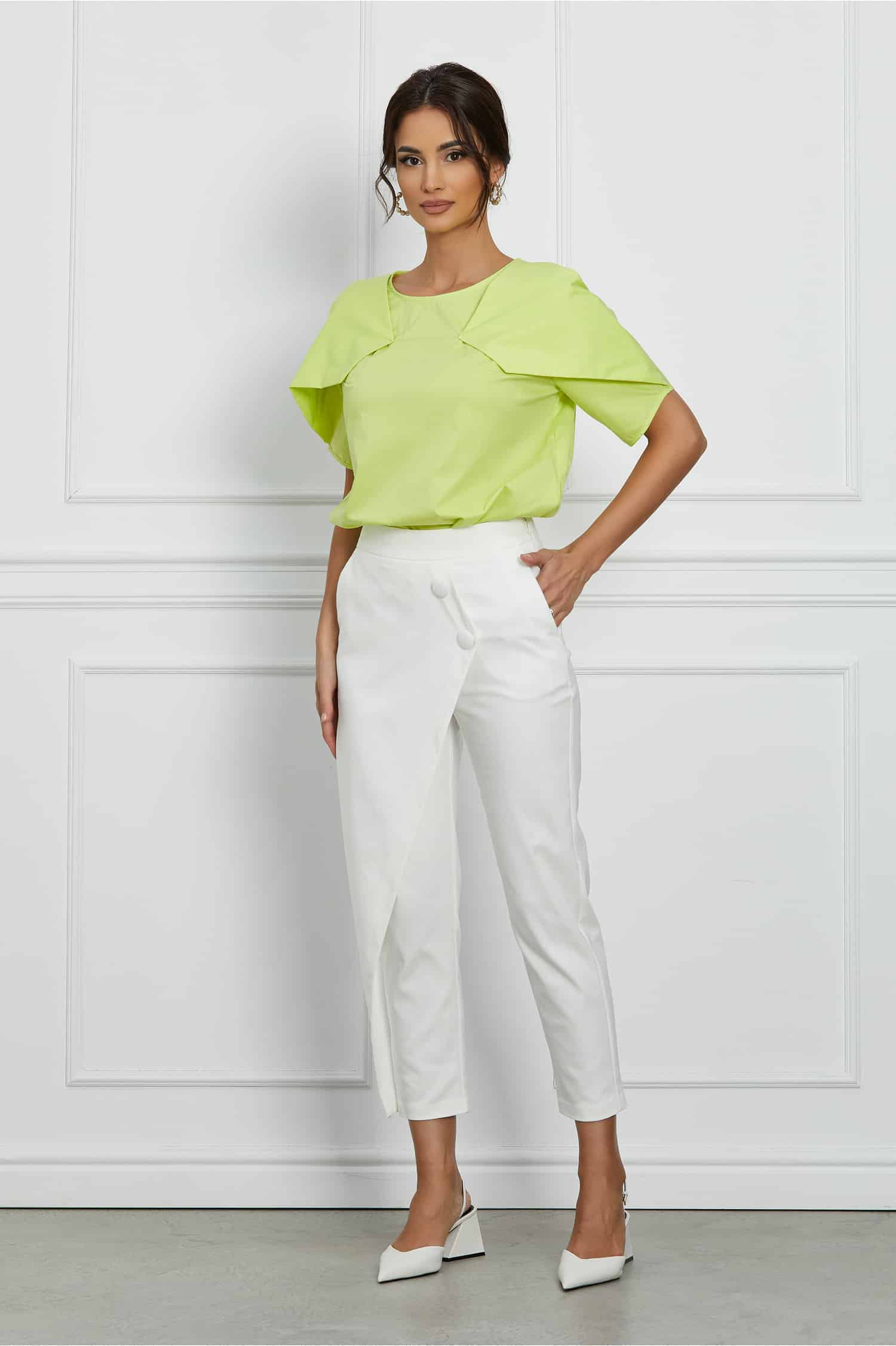 Pantaloni Lory albi cu aplicatie petrecuta si nasturi