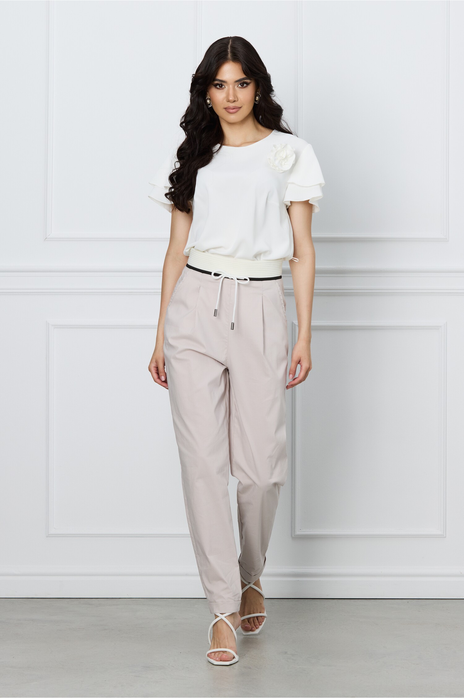 Pantaloni Melisa bej cu dungi albe! La acest produs ai transport si retur gratuite! Livrare in Easy Box!