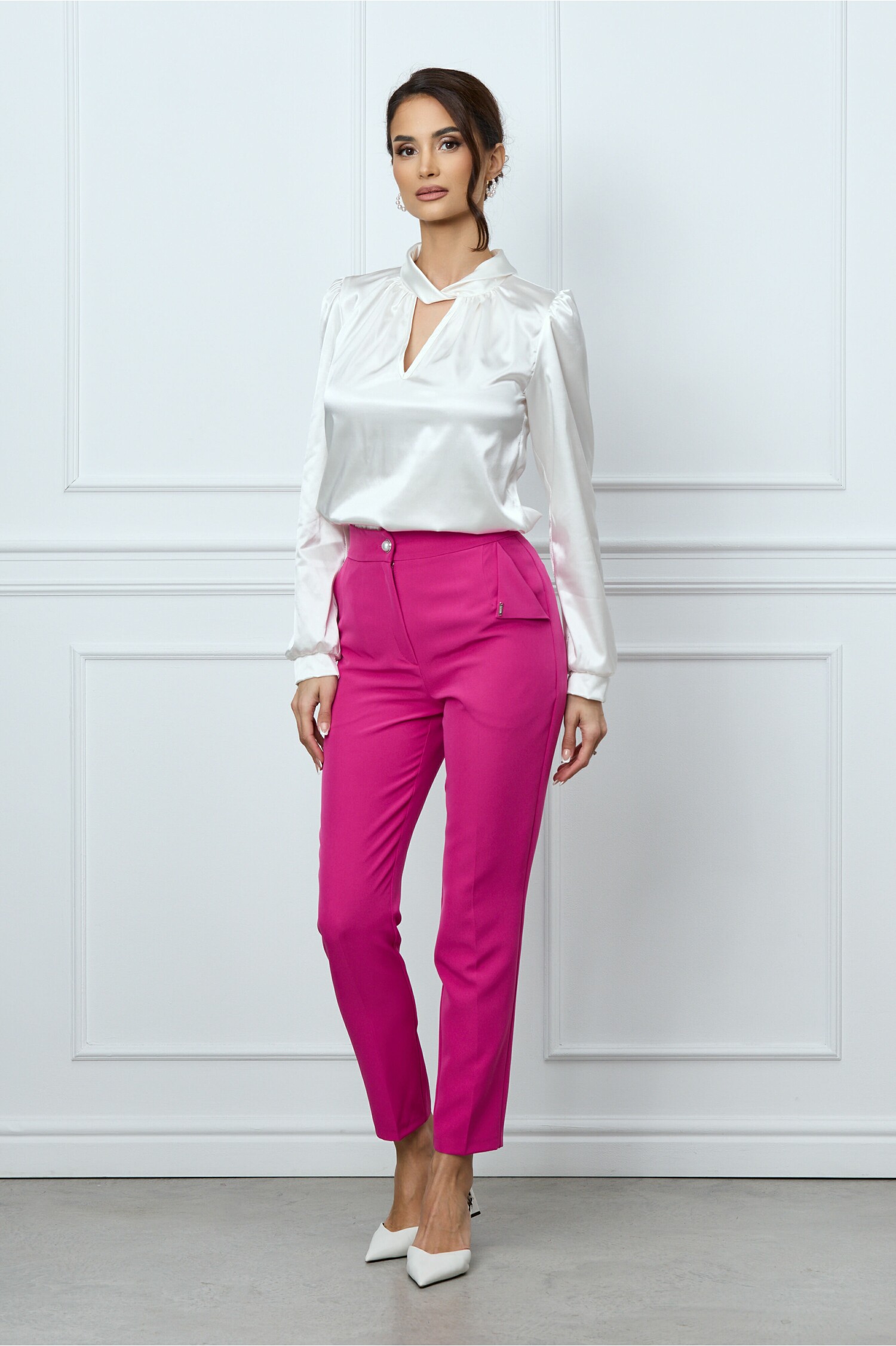 Specification: Pantaloni Moze fucsia cu dunga conici