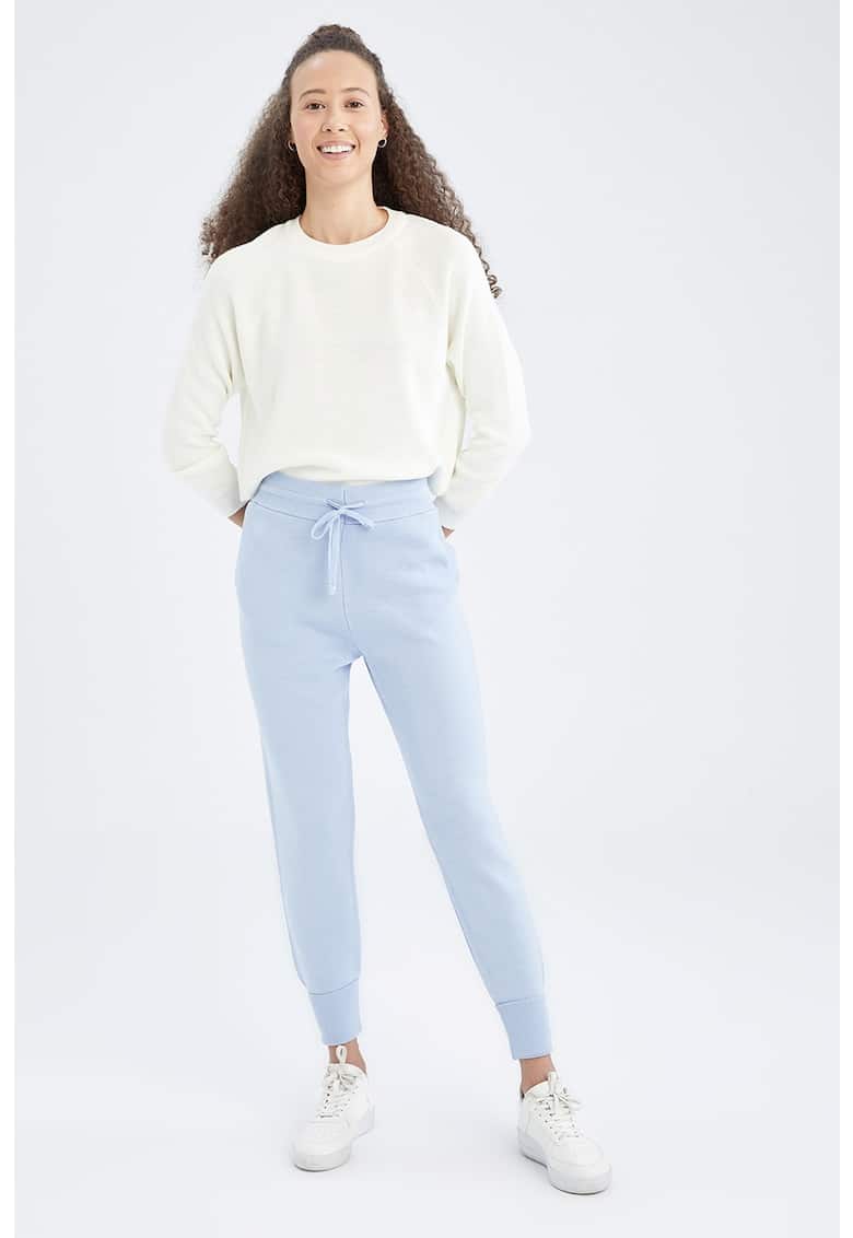 Caracteristici Culoare: albastru lavanda Stil: casual Material: sintetic Imprimeu: uni Croiala: regular fit Lungime: lungi Talie: inalta Detalii: snur pentru ajustare Buzunare: 2 laterale Sistem inchidere: fara inchidere Compozitie Exterior: 100% acrilic