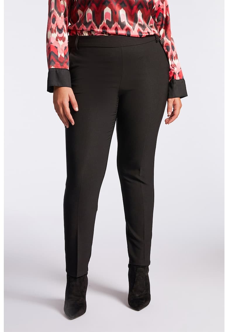 Caracteristici Culoare: negru Stil: casual Material: sintetic Imprimeu: uni Croiala: slim fit – curvy Lungime: lungi Talie: medie Detalii: acest produs se adreseaza femeilor cu forme pline (plus size). Buzunare: 2 oblice Sistem inchidere: fara inchidere Compozitie Exterior: 92% poliester – 8% elastan