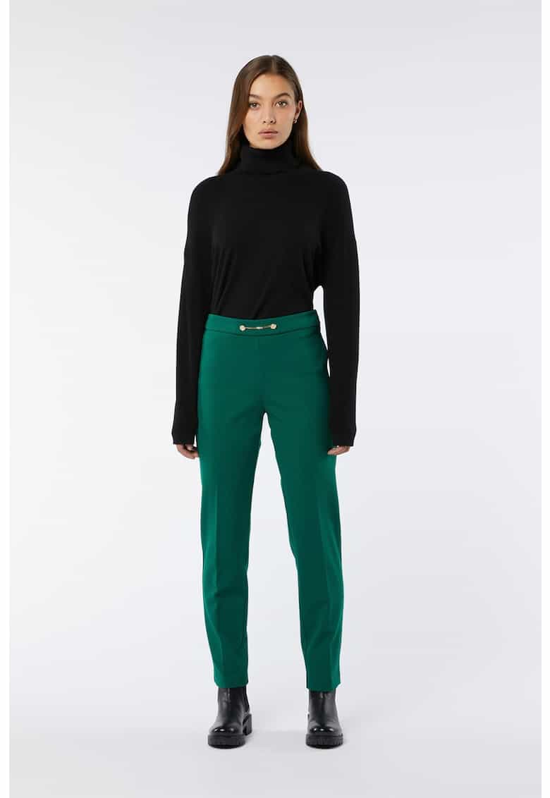 Caracteristici Culoare: verde inchis Stil: casual Material: viscoza Imprimeu: uni Croiala: dreapta Lungime: lungi Talie: inalta Sistem inchidere: fara inchidere Compozitie Exterior: 67% viscoza – 29% poliamida – 4% elastan