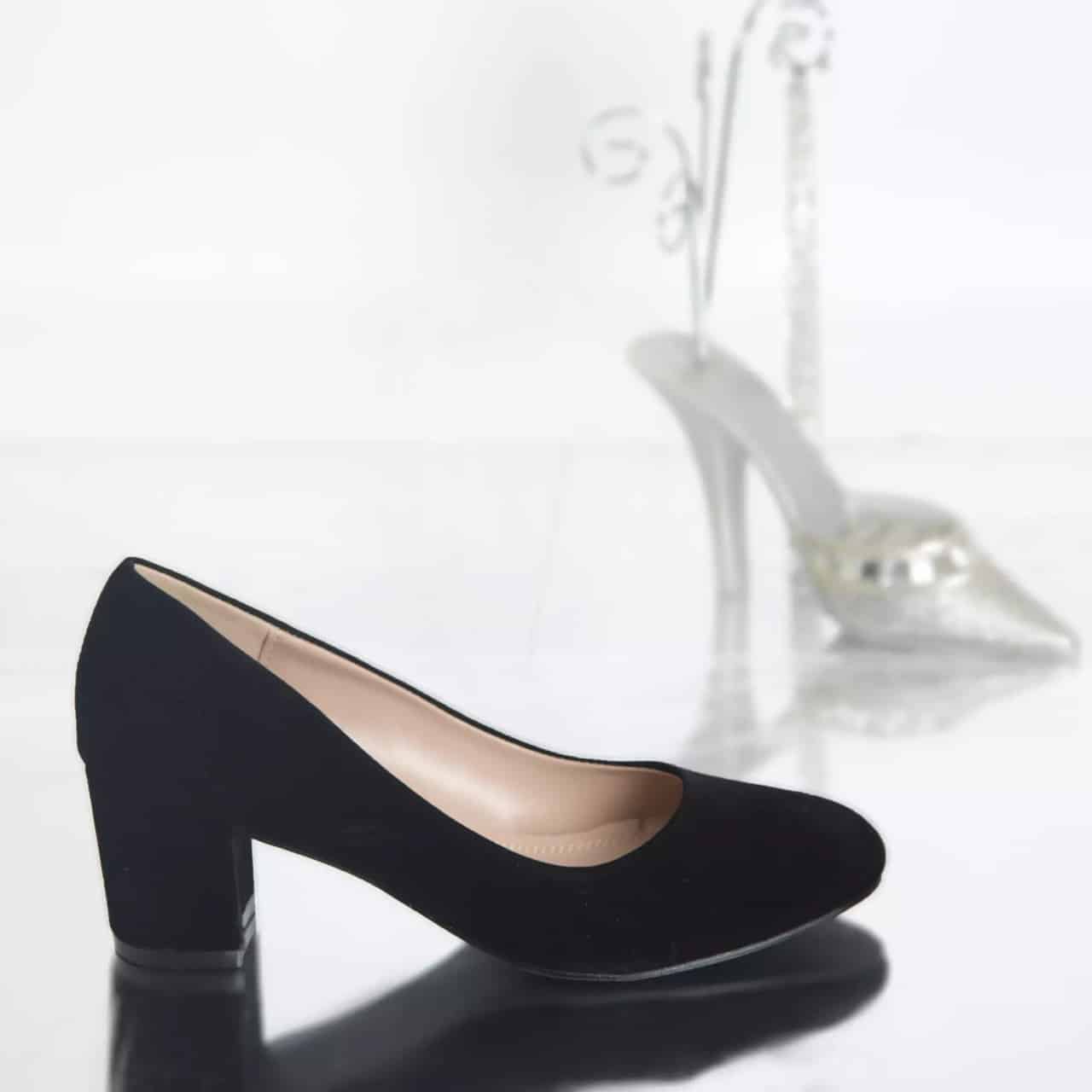 PANTOFI CU TOC BAILEY NEGRU PIELE ECOLOGICA INTOARSA;Transport gratuit peste 300 RON. Retur in 14 zile.