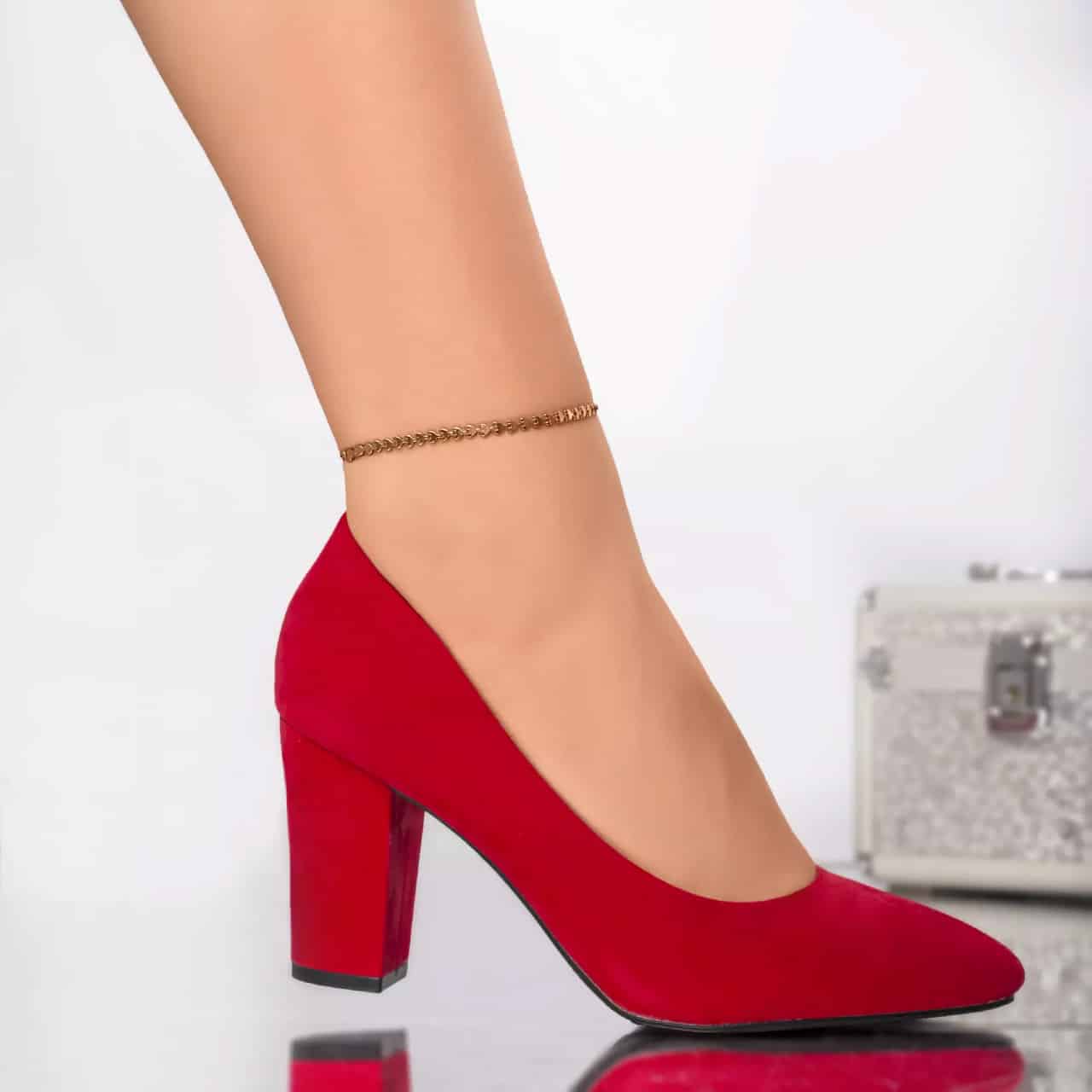 PANTOFI CU TOC ELIZABETH ROSU CATIFEA;Transport gratuit peste 300 RON. Retur in 14 zile.