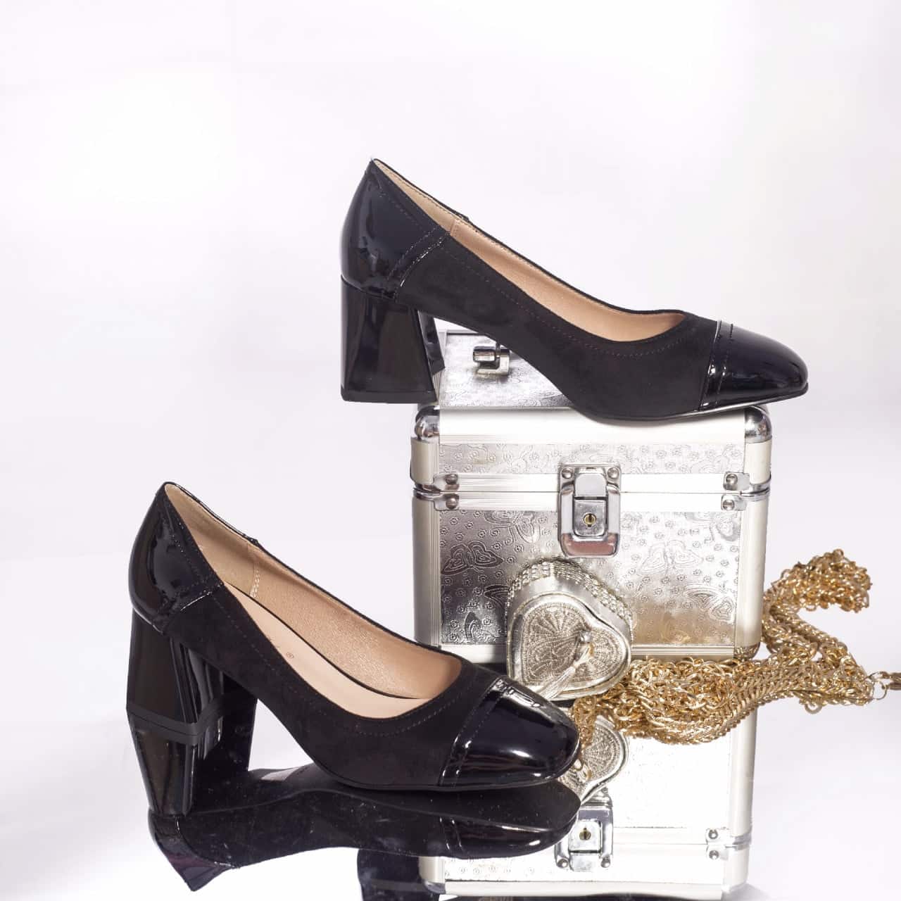 Specification: PANTOFI CU TOC Glorya PIELE ECOLOGICA LACUITA SI PIELE ECOLOGICA INTOARSA BLACK